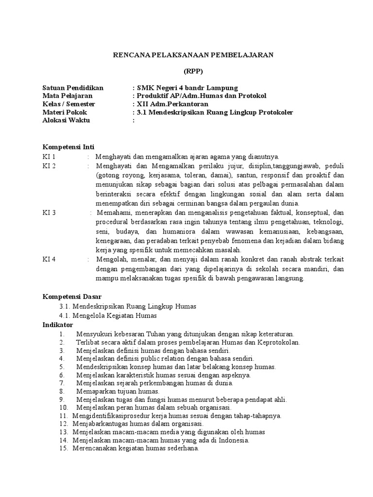 Rpp otomatisasi tata kelola humas dan keprotokolan kelas xii. Check spelling or type a new query. We did not find results for: Maybe you would like to learn more about one of these?