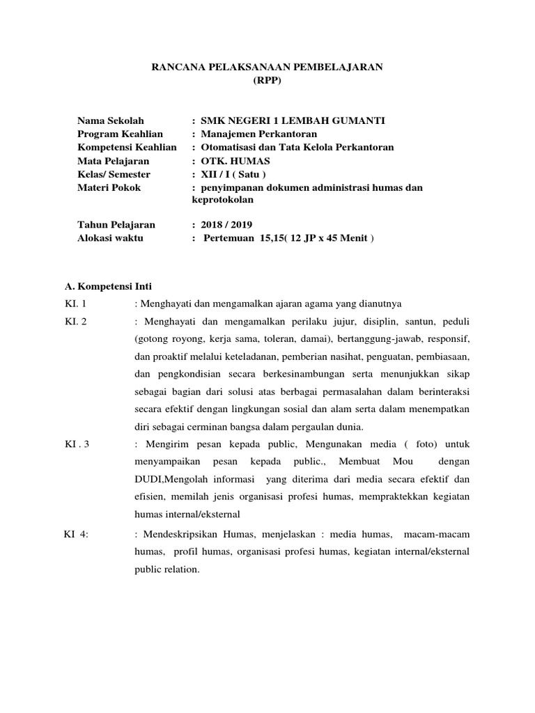 Maybe you would like to learn more about one of these? Rpp otomatisasi tata kelola humas dan keprotokolan kelas xii. Check spelling or type a new query. We did not find results for: