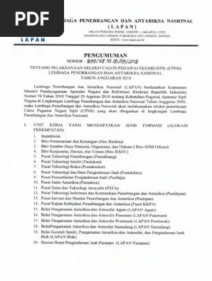 Formasi Cpns Lapan 2019 Pdf / Pengumuman Rekrutmen Cpns Kementerian Ketenagakerjaan 2019 416 Formasi / Perincian formasi cpns 2019 di kemendikbud.
